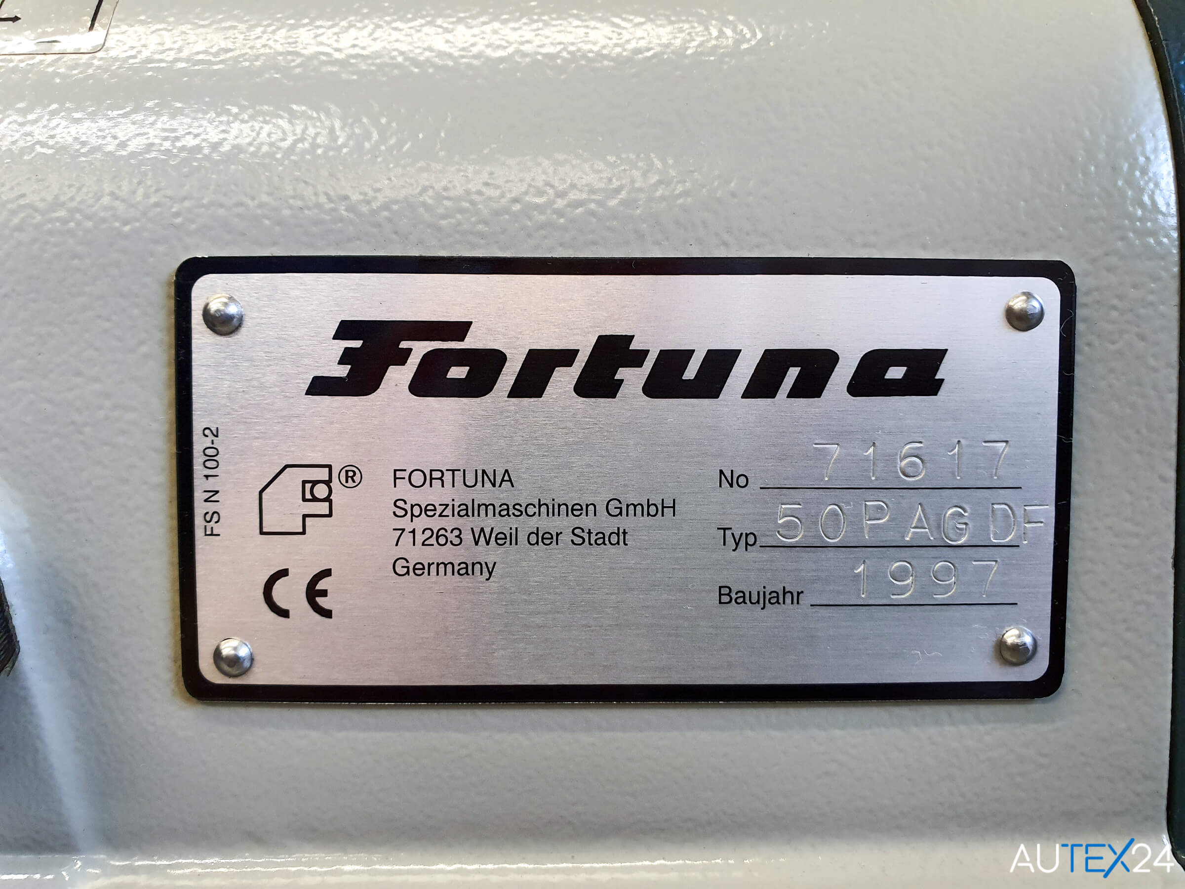 Komplett auf Gestell für Arbeitsbreiten bis 50 mm, BJ 1997, angetriebene Führungsrolle mit exakt regulierbarer, stufenloser, elektronischer Vorschubgeschwindigkeit und modifizierter automatischer Absaugung inkl. Spänekasten, original Fortuna Arbeitsleuchte und einem Leistungsstarken 400 V Starkstrommotor