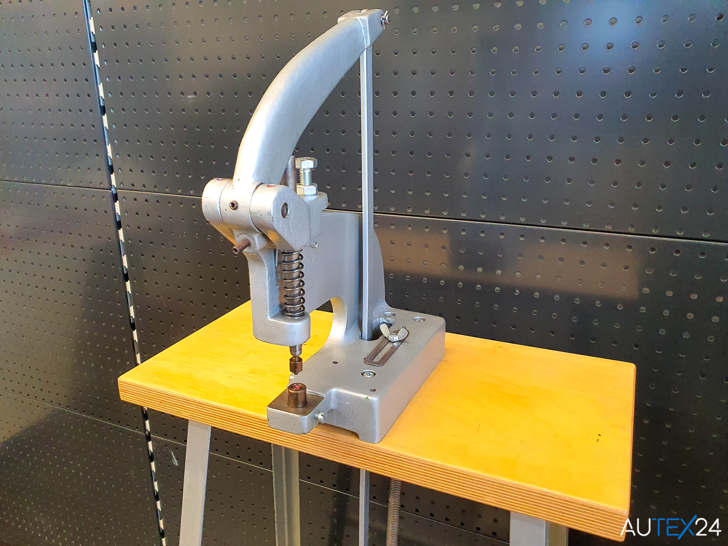 Sie wird zur Verarbeitung von Nieten, Knöpfen, Druckknöpfen, Vorlochen und Ansetzen von Ösen und eingesetzt. Weitere Einsatzmöglichkeiten zum Verpressen anderer Produkte sind mit entsprechenden Ansetzwerkzeugen möglich.