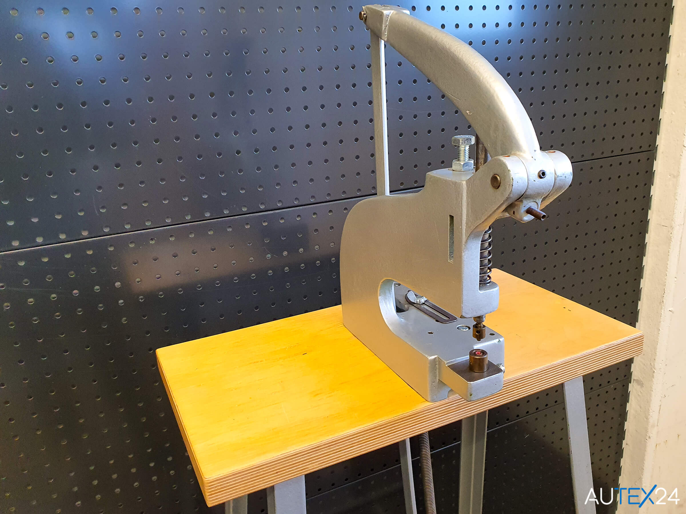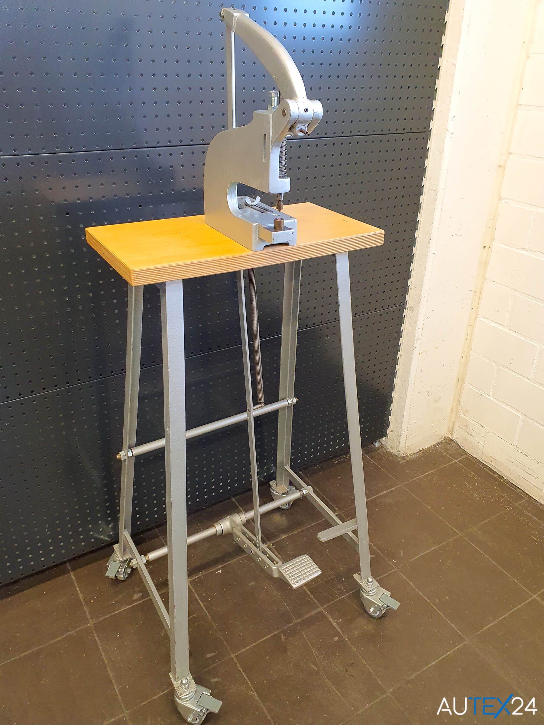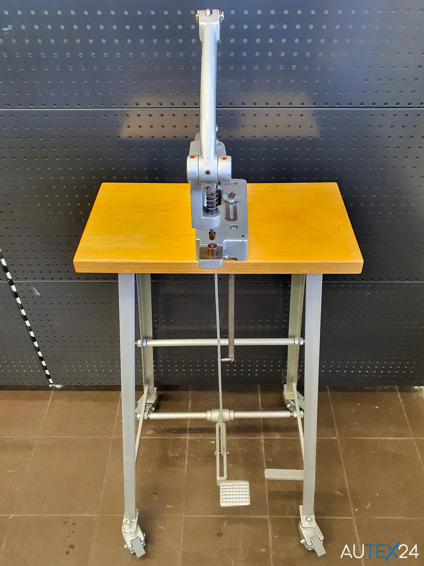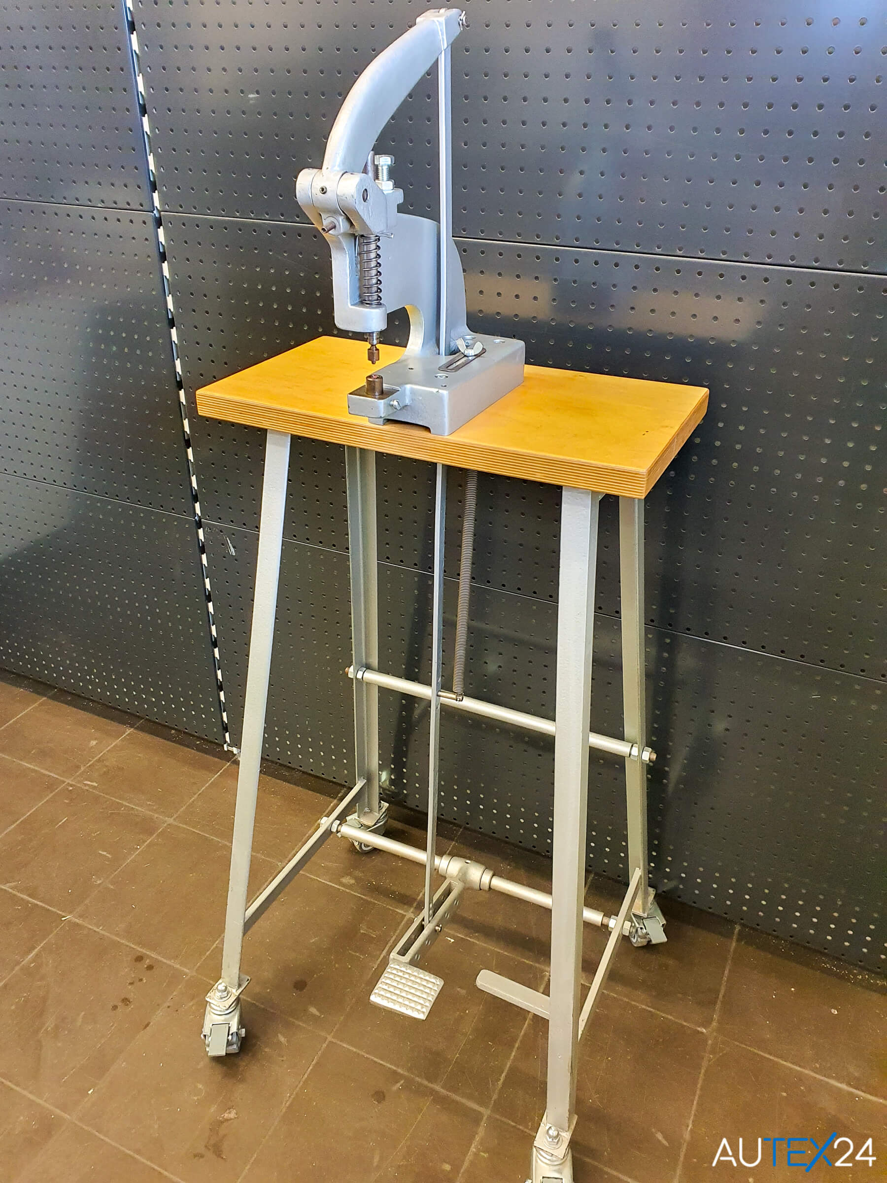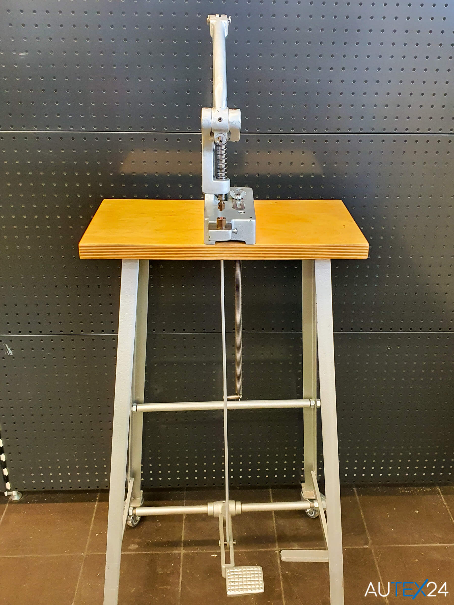 Fußhebelpresse für Nieten, Ösen, Druckknöpfe und Lochwerkzeuge komplett auf Gestell mit Rlilen ohne Ansetzwerkzeuge