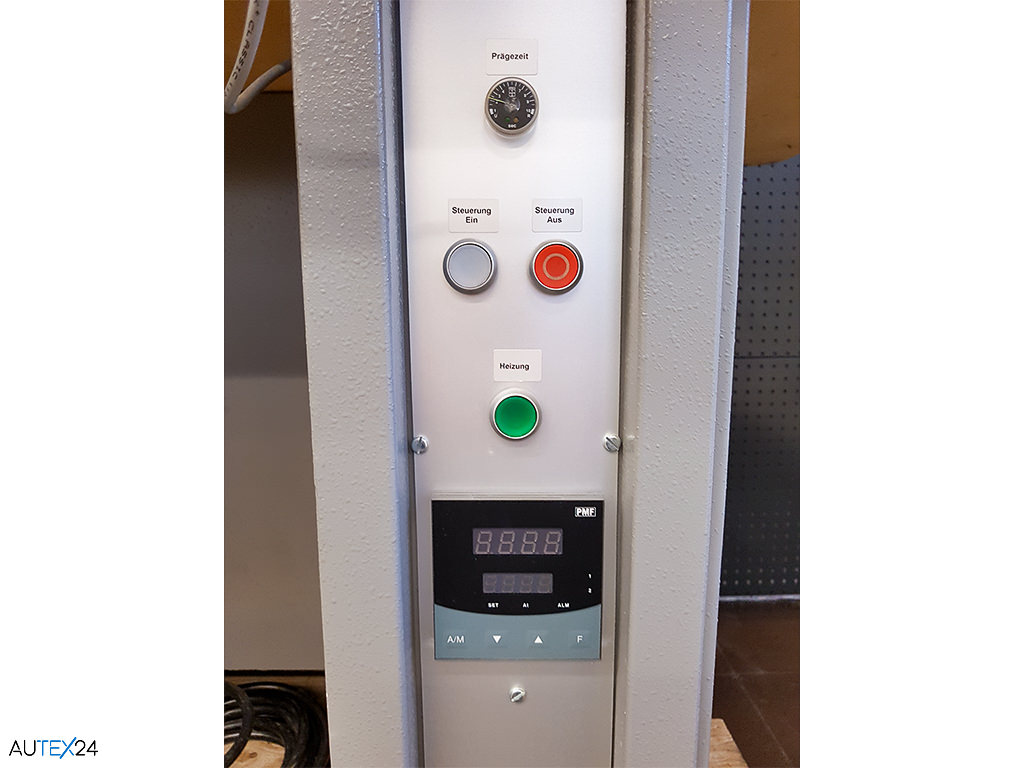 Sie ist ausgestattet mit einer 480 x 480 mm großen Prägefläche und verfügt über einen maximalen Prägedruck von 5 t (0 – 50 kN).