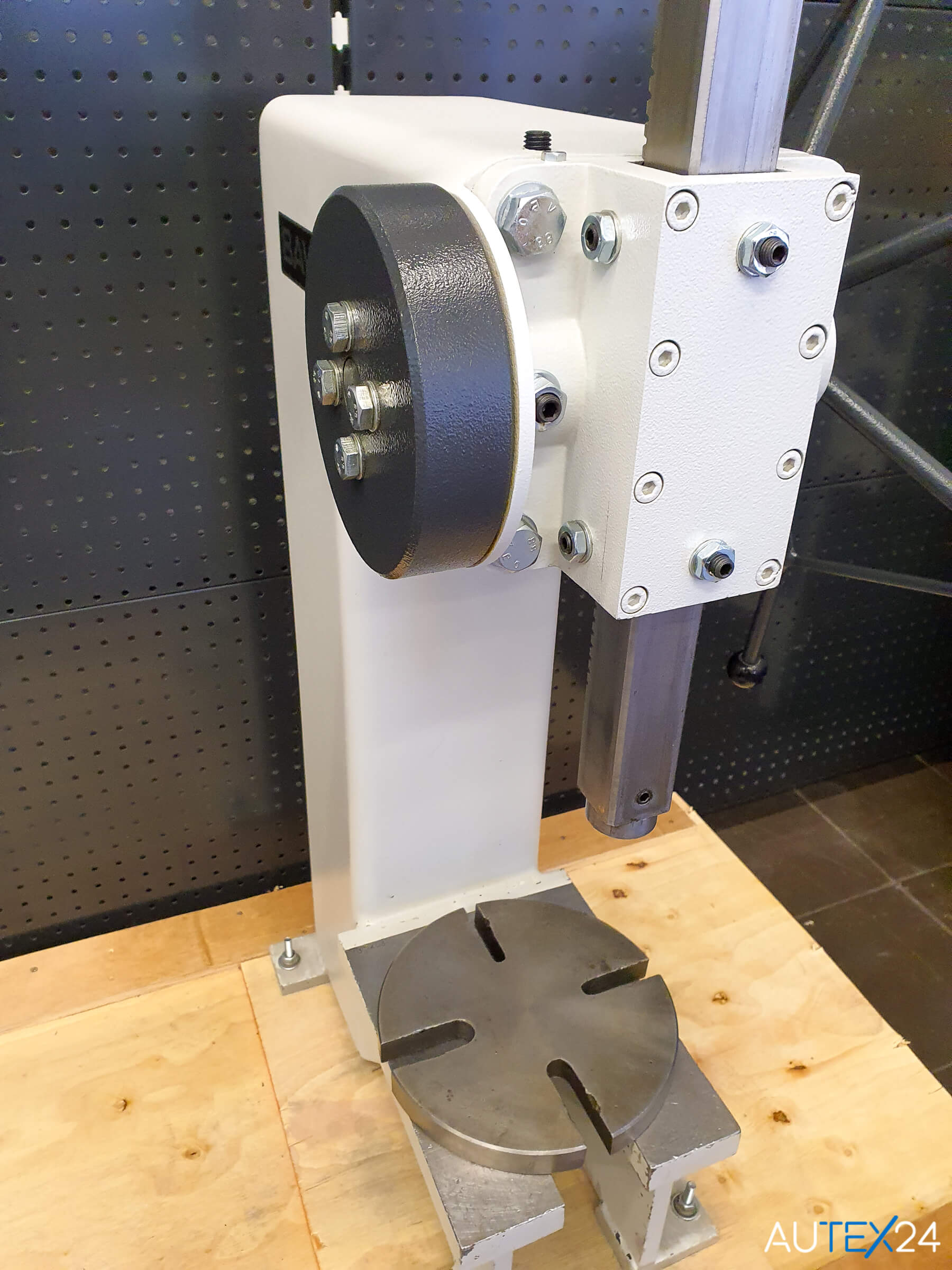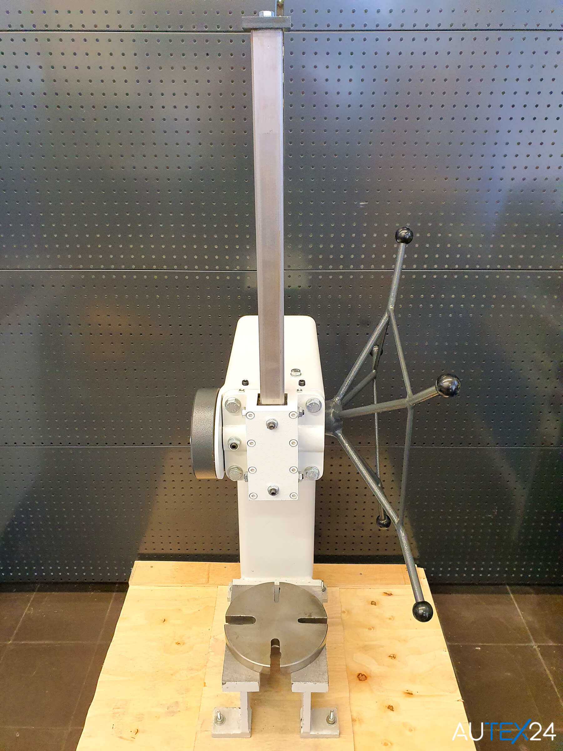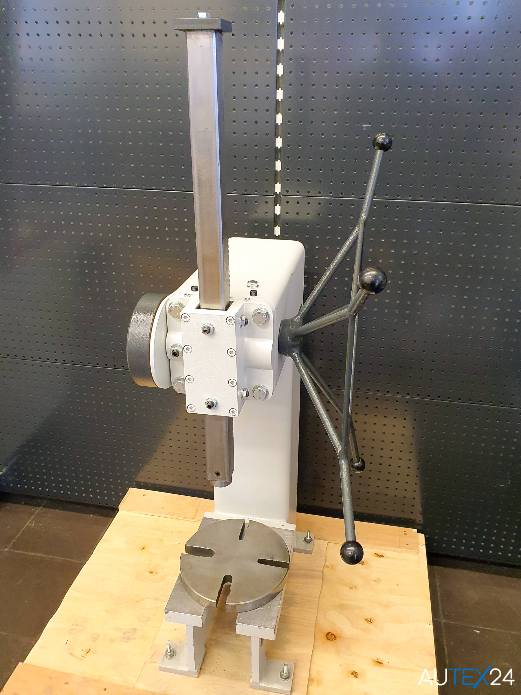 Der Antrieb erfolgt mit einem 5-speichigen Handrad über ein Planetengetriebe auf die Antriebsspindel. Durch die große Übersetzung ist nur ein geringer Kraftaufwand am Handrad erforderlich. Die Führung der Vierkantarbeitsspindel ist mit nachstellbaren Leisten ausgestattet.