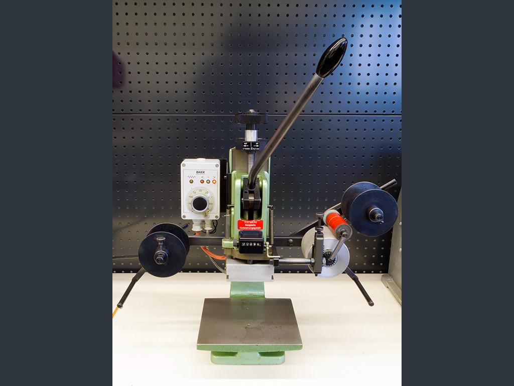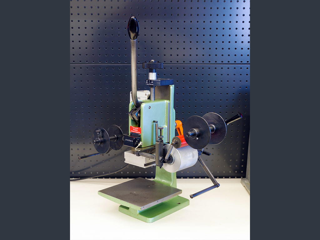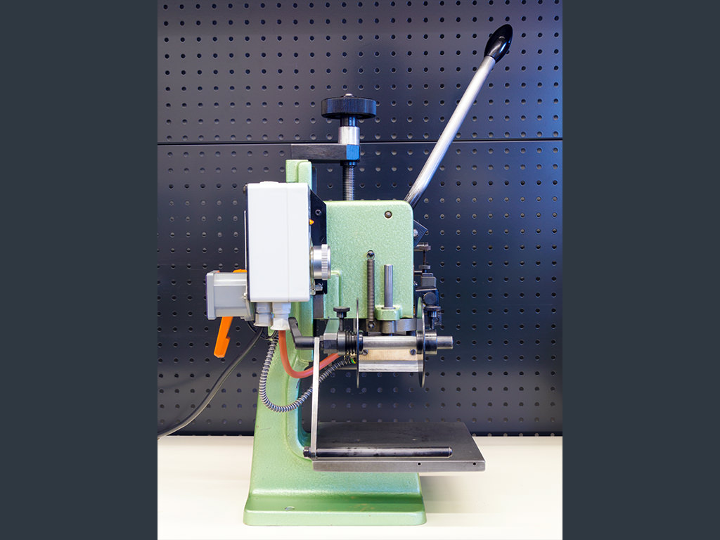 The model GEBA 1 is a universal, manually operated machine with toggle lever transmission, which is used in leather processing, in the plastics sector and by promotional article manufacturers. The small embossing machine is as universal as a Swiss Army knife and can be used quickly and easily for many different embossing tasks.