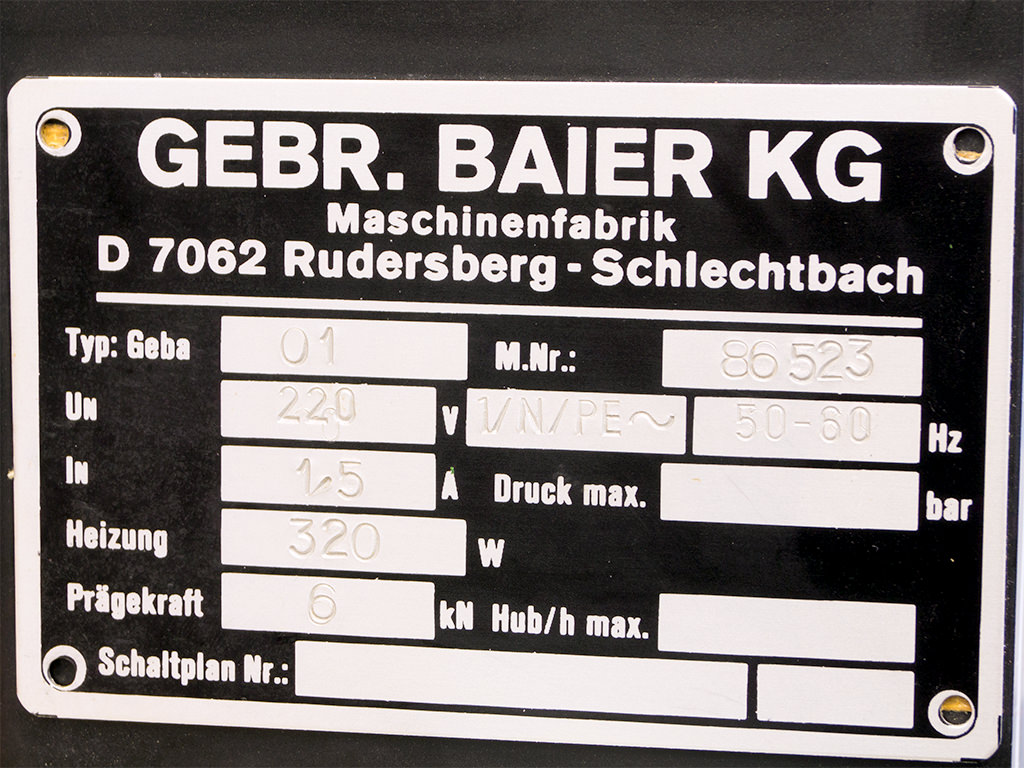 The BAIER hot stamping machine is both technically and optically in a good used condition, is fully functional and ready for immediate use.