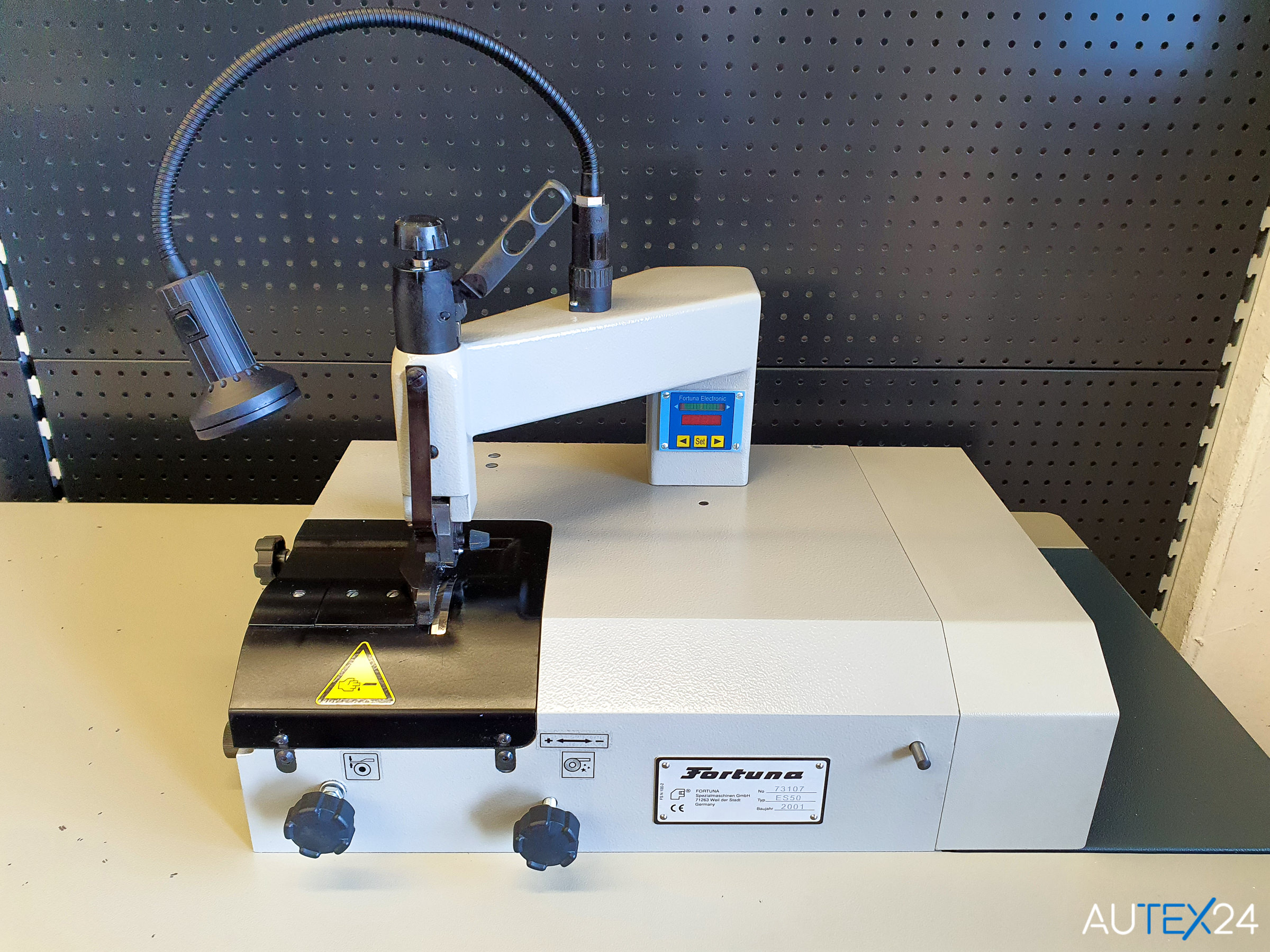 The Fortuna ES 50 leather skiving machine is in good used condition, fully functional, cleaned and ready for immediate use. The optical condition can be seen in the attached pictures and videos. An inspection and detailed examination of the purchased item, is expressly desired by arrangement.