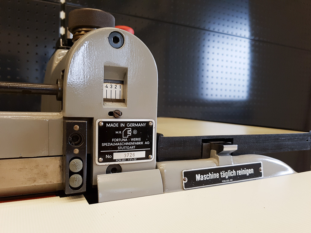 Furthermore, the Fortuna UA 305 leather splitting machine has an automatic chip extraction system with a large chip box and dust filter. This ensures perfect working hygiene, is low-noise and draught-free. Furthermore, no material losses are caused by cutting, which enables trouble-free working.