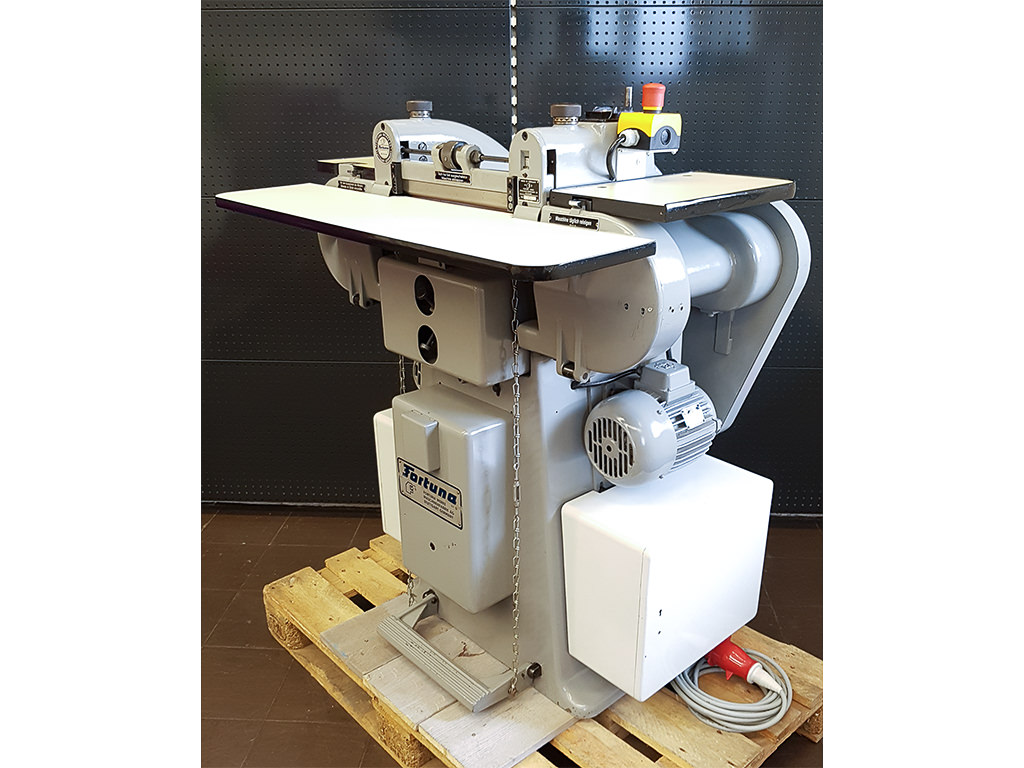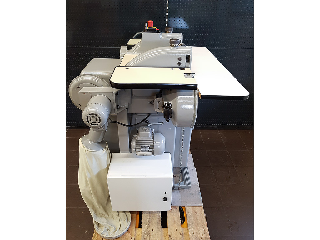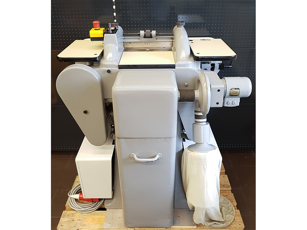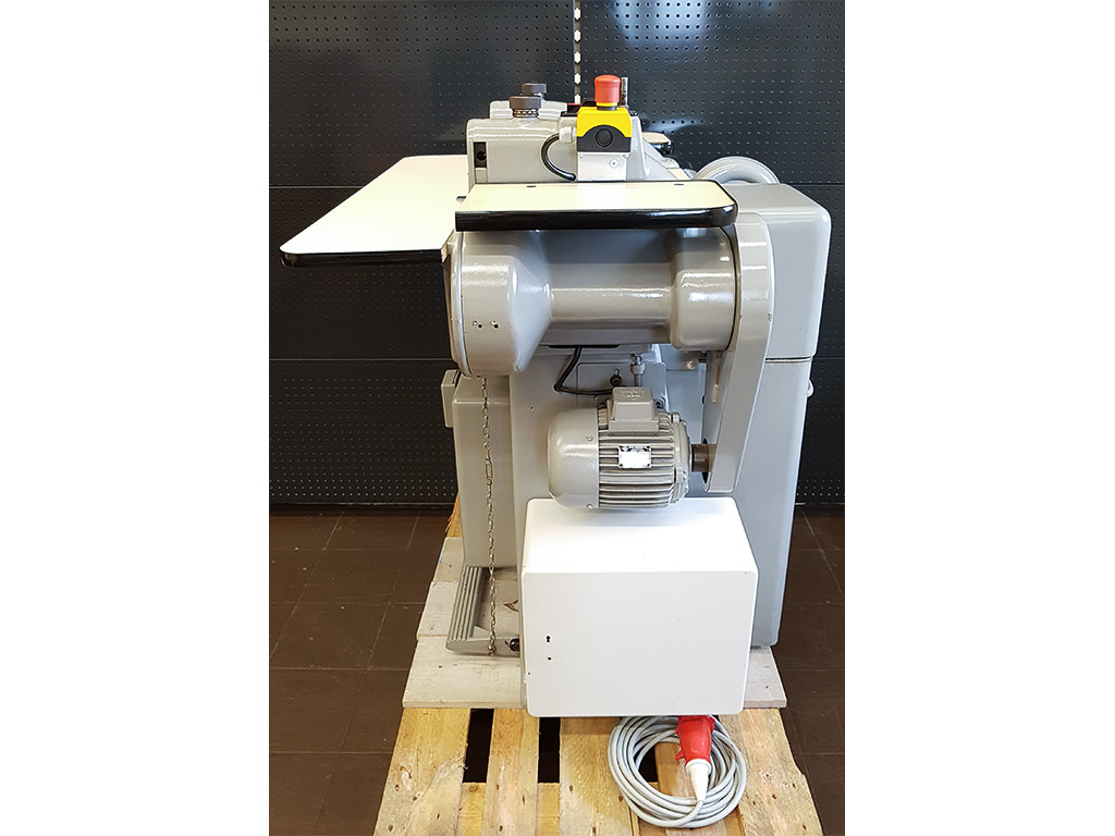 With 305 mm slit width, guide roller and ruler, lower elastic feed roller, chip and dust extraction, automatic regrinding for the band knife, automatic adjustment and tensioning of the band knife guide and two push-button controlled feed speeds