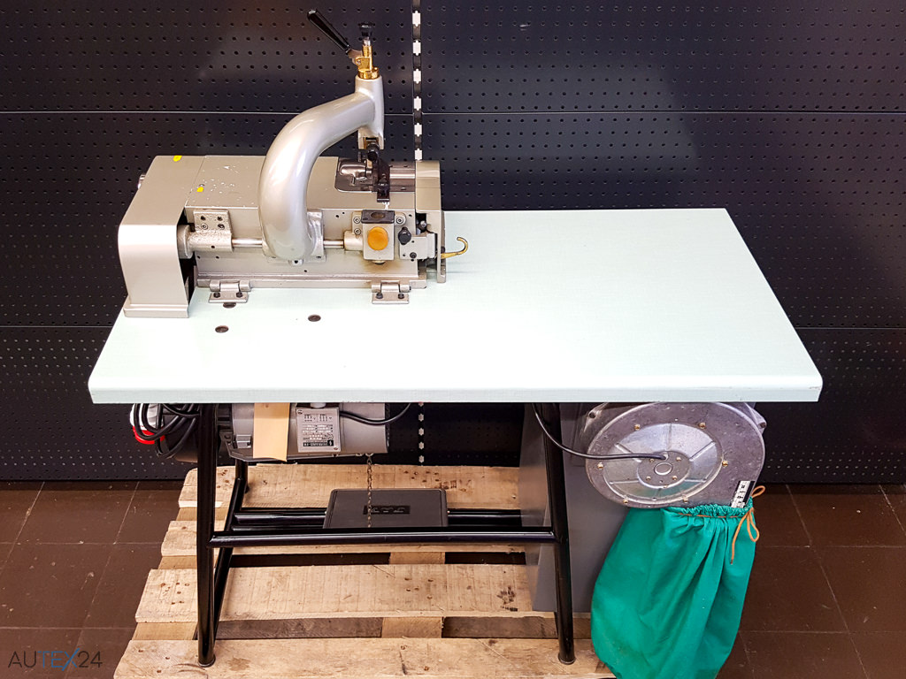 Completely mounted on a frame for working widths up to 50 mm, including driven guide roller with precisely adjustable feed speed via clutch motor, automatic suction system incl. chip box and a powerful 380 V high-voltage motor