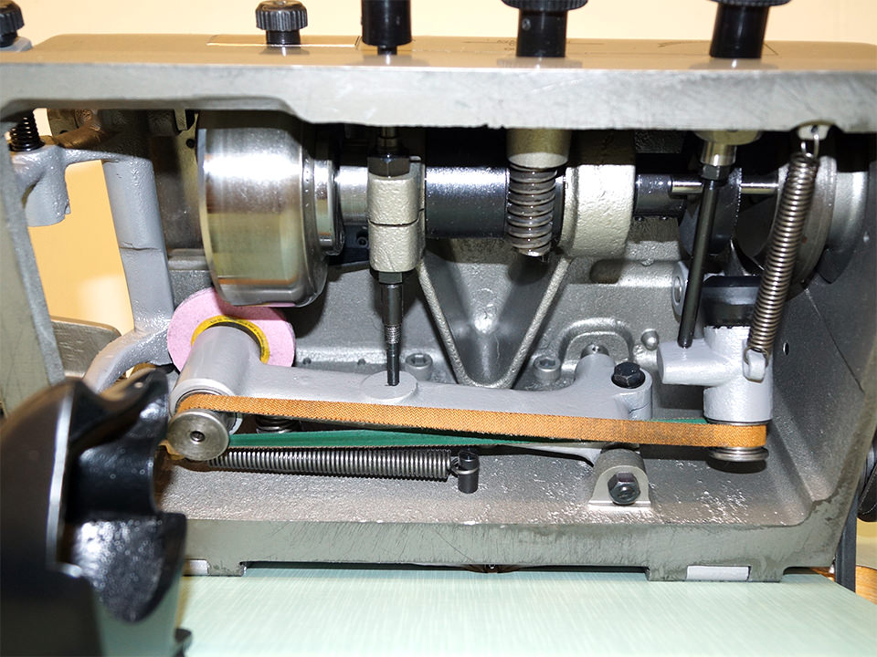 The speed of the feed roller is controlled by pedal to accurately meter the feed of the material, allowing the processing of materials with internal and external curves.