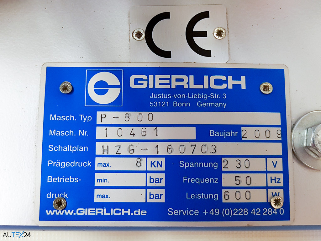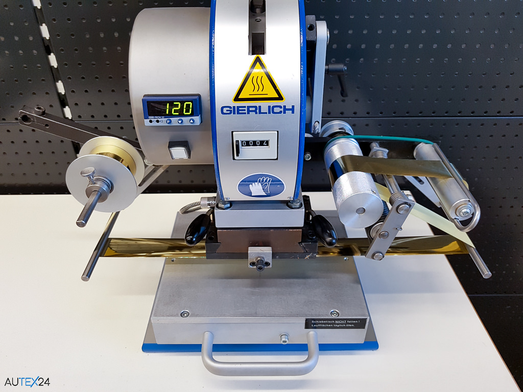 The Gierlich P800 hot stamping press is in good used condition, fully functional, cleaned and ready for immediate use. The optical condition can be seen in the attached pictures and videos. An inspection and detailed examination of the purchased item, is expressly desired by arrangement.