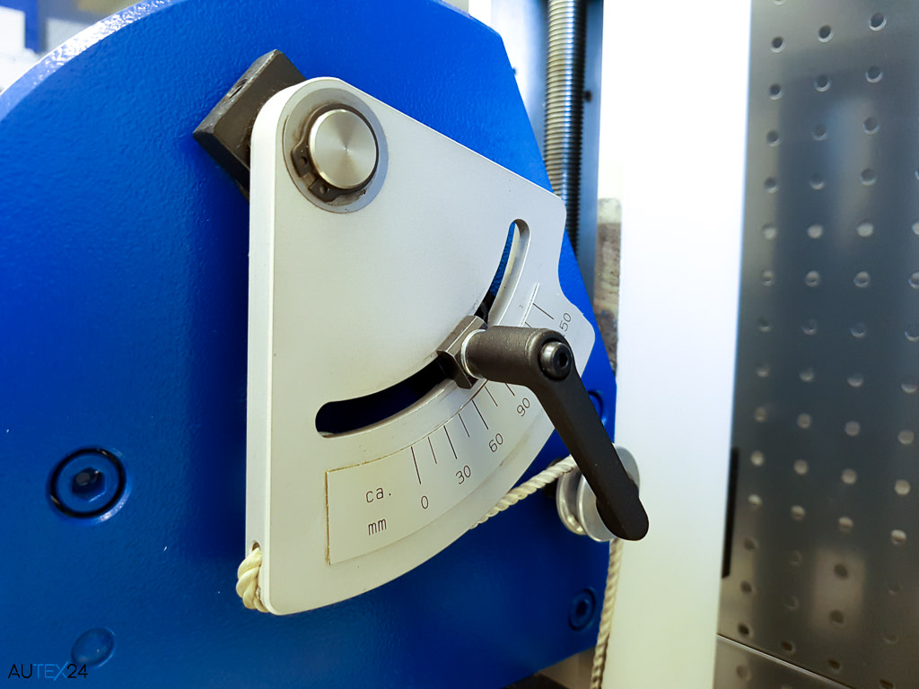 The embossing machine is equipped with an extendable work table of 200 x 260 mm and has an extension width of 130 mm.