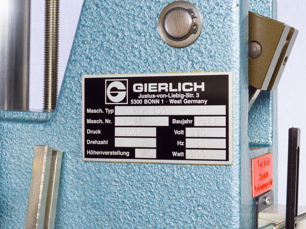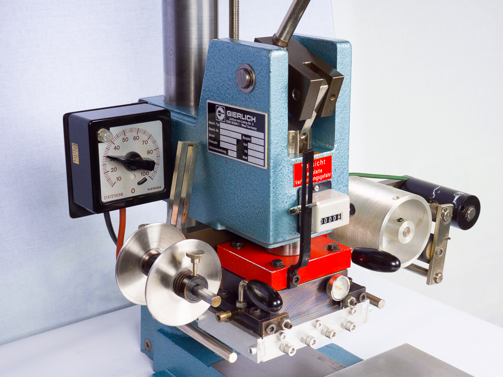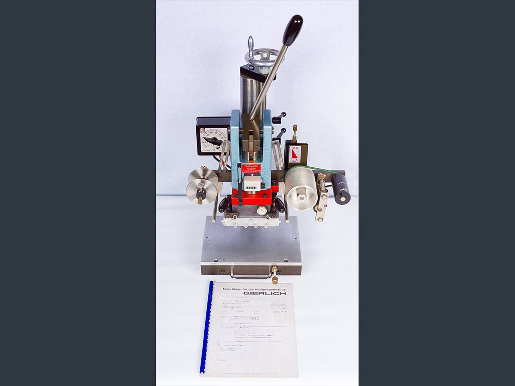 The Gierlich P800 hot stamping press is in good used condition, fully functional, cleaned and ready for immediate use. The optical condition can be seen in the attached pictures and videos. An inspection and detailed examination of the purchased item, is expressly desired by arrangement.