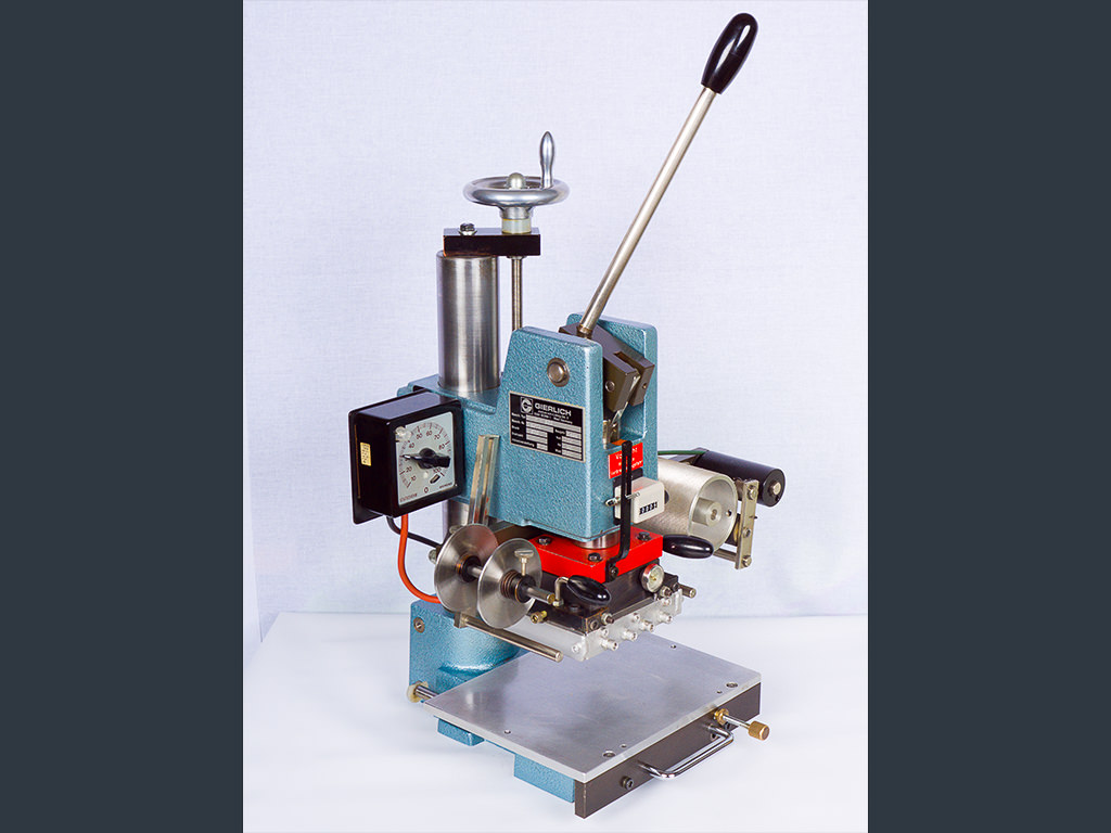 It is equipped with a 75 x 120 mm embossing plate and has a maximum embossing pressure of 800 kg (0 - 8 kN). For immediate commissioning, a large clamping frame of 75 x 130 mm mounting surface is included in the scope of delivery.