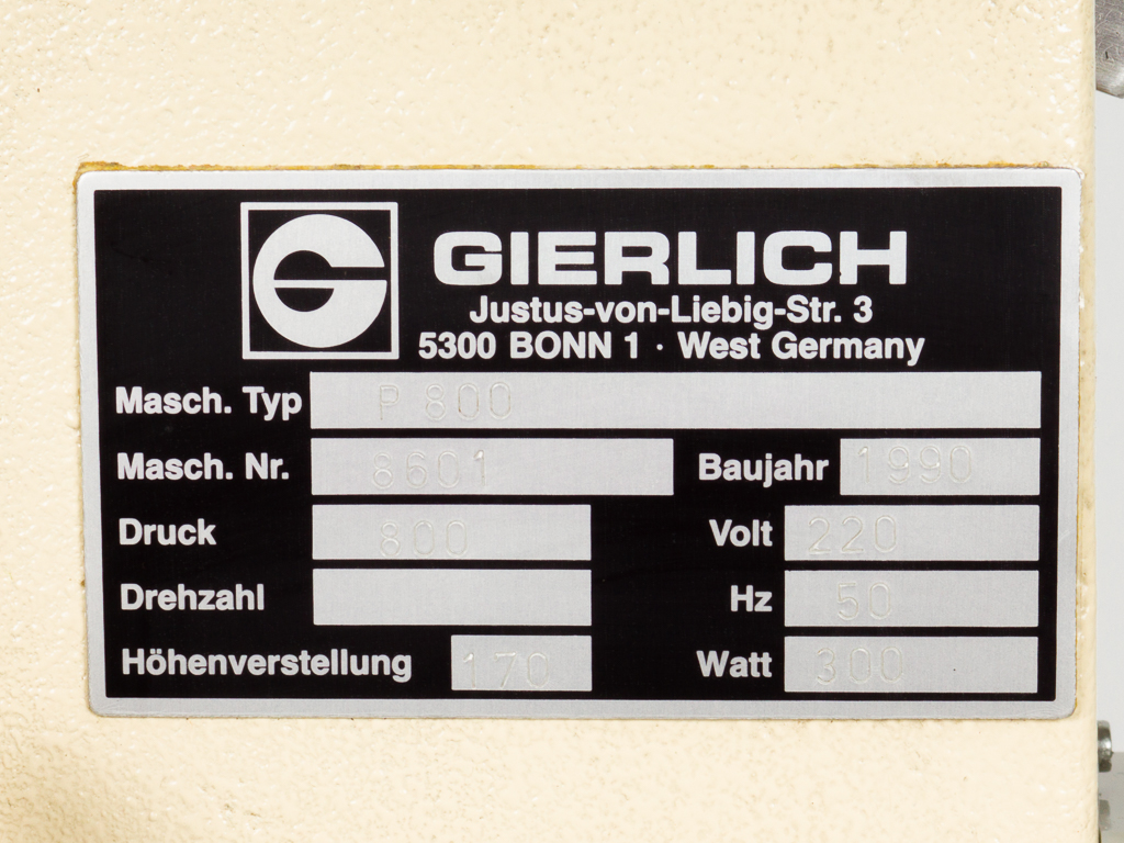 The Gierlich P800 hot stamping press is in good used condition, fully functional, cleaned and ready for immediate use. The optical condition can be seen in the attached pictures and videos. An inspection and detailed examination of the purchased item, is expressly desired by arrangement.