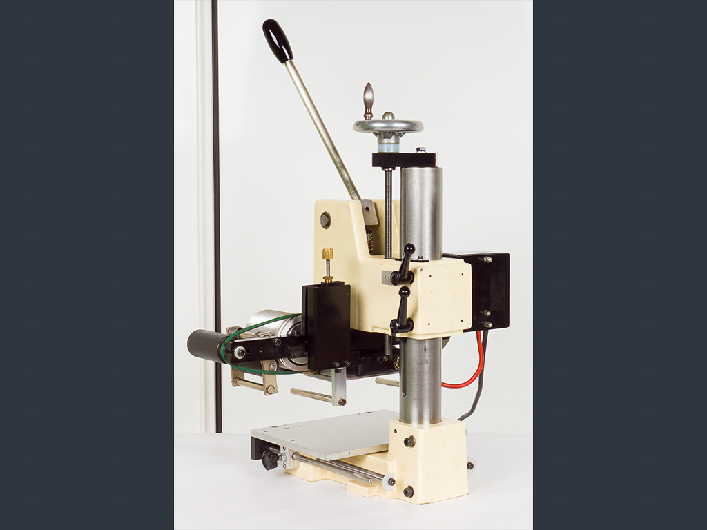 It is equipped with a 75 x 120 mm embossing plate and has a maximum embossing pressure of 800 kg (0 - 8 kN). For immediate start-up, a large cliché holding plate of 75 x 130 mm placement area is included in the scope of delivery.