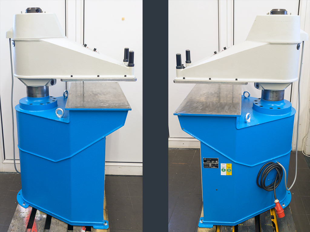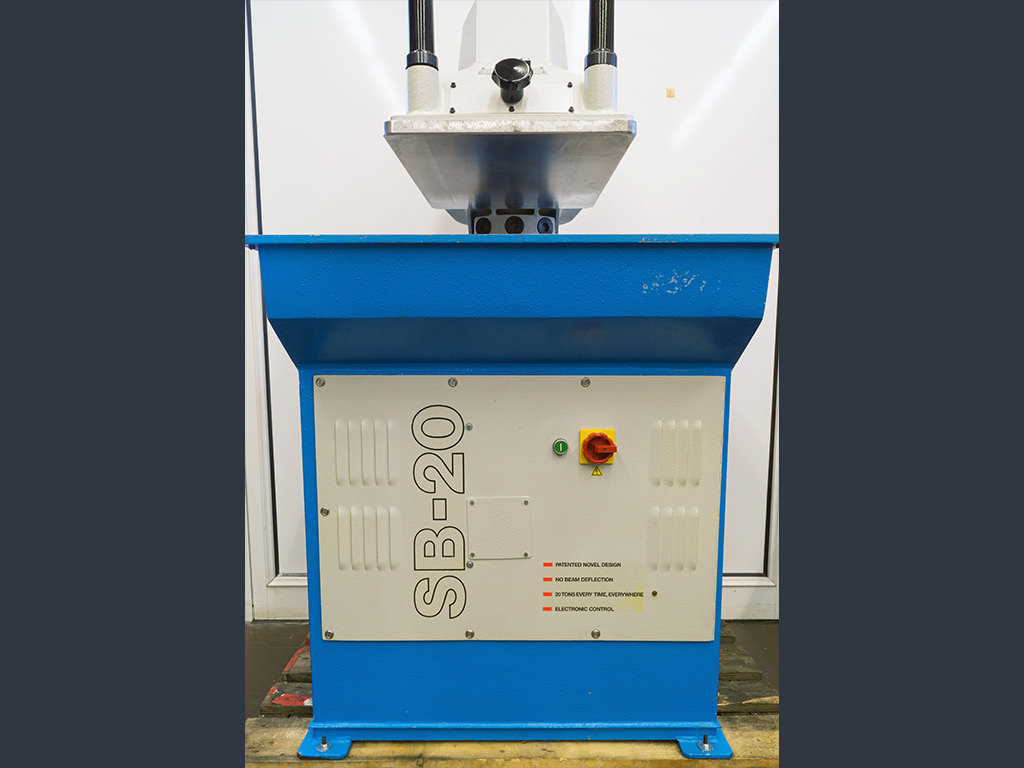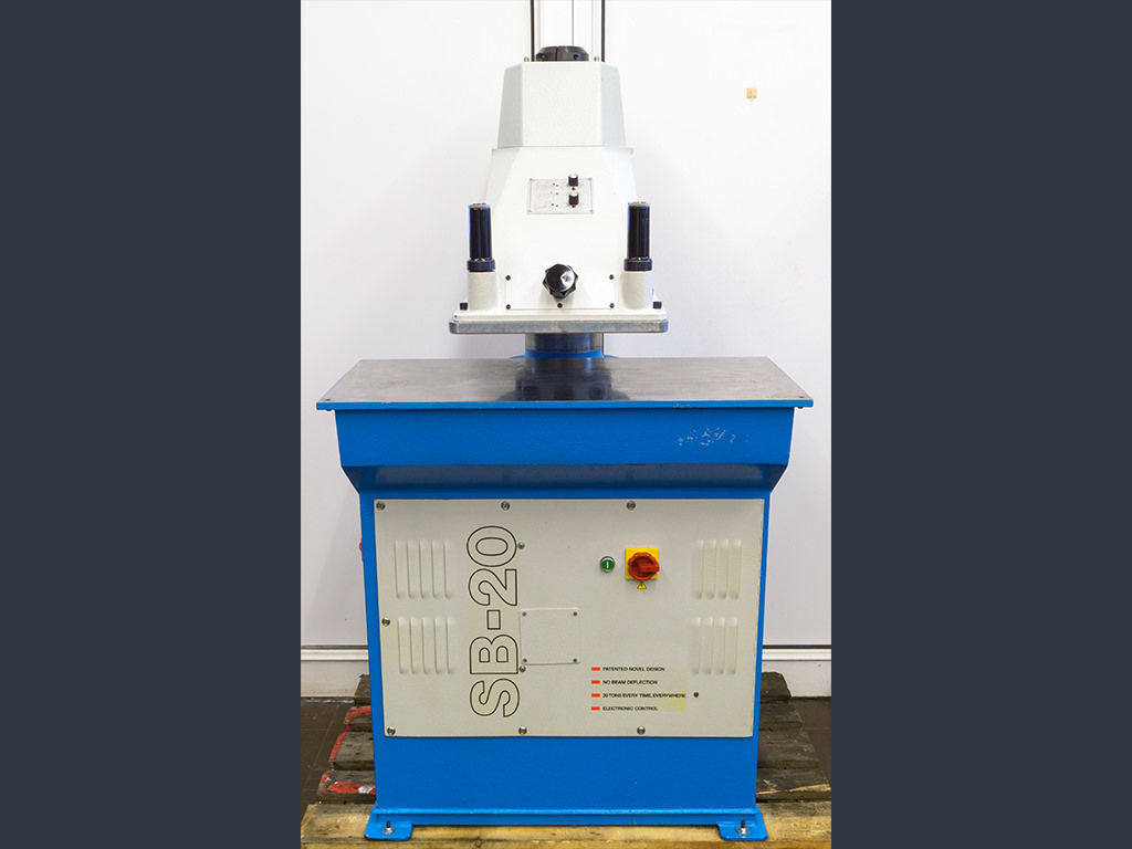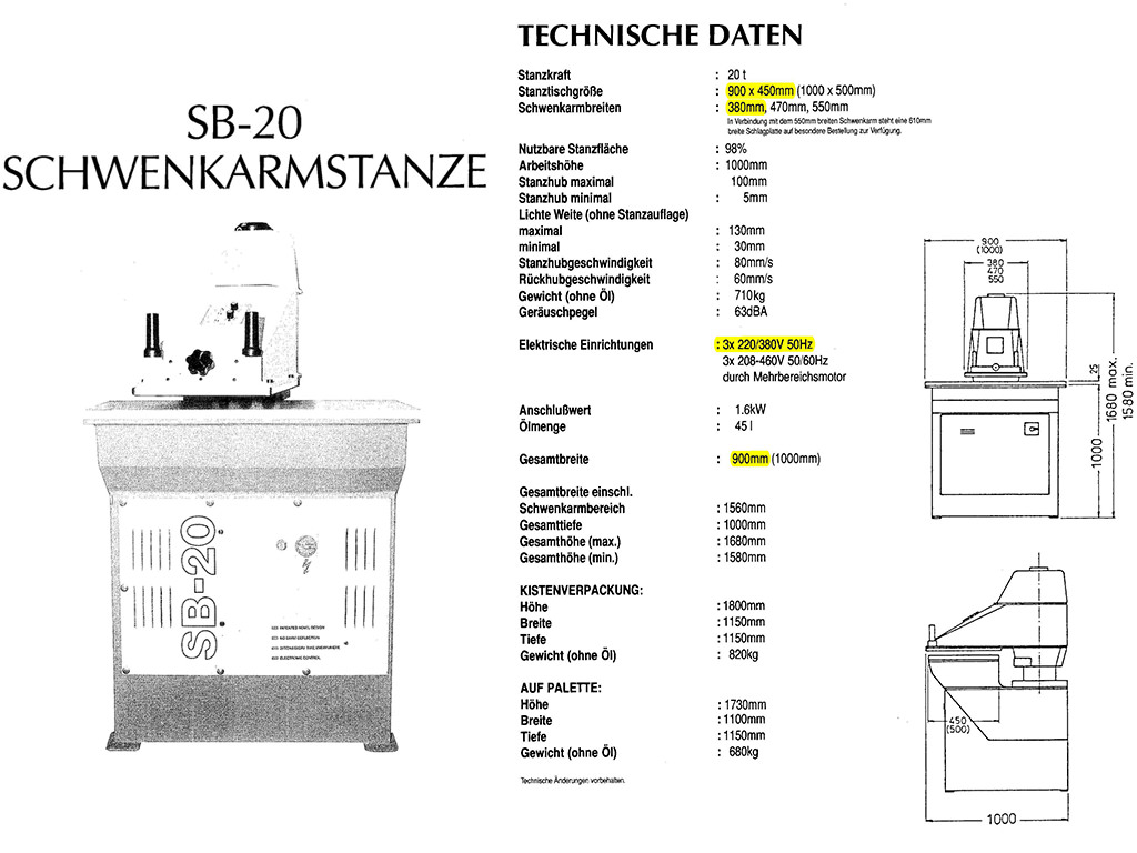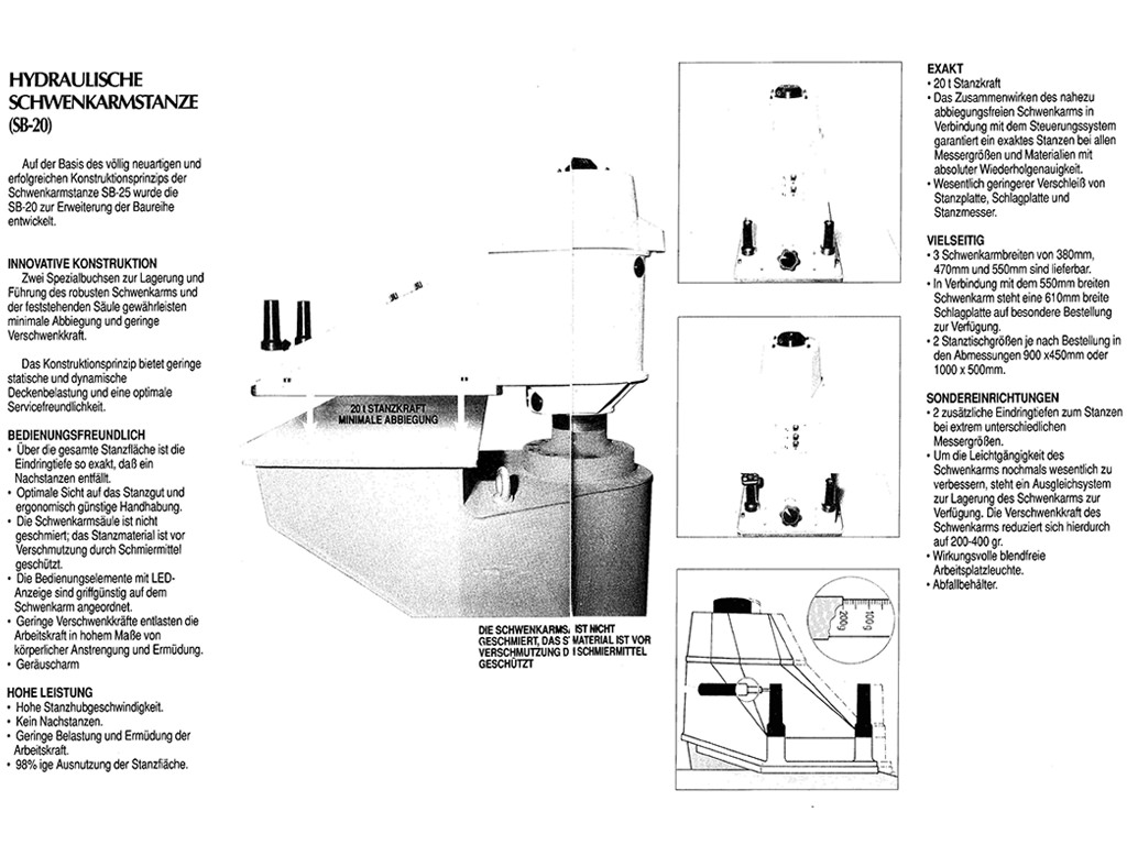 With 200 kN (20 t) punching force, 900 x 450 mm punching area, 380 x 570 mm swivel arm width, 5 - 100 mm punching stroke, semi-automatic knife device and electric two-hand release